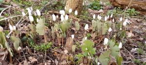 The warm weather and rain have spurred a rapid progression in the spring wildflowers at MSJ. In just the past few days marsh marigold, bloodroot, spring beauty, false rue anemone and dutchman's breeches have started blooming. At peak bloom the marsh marigold will blanket the woodland fen in gold.